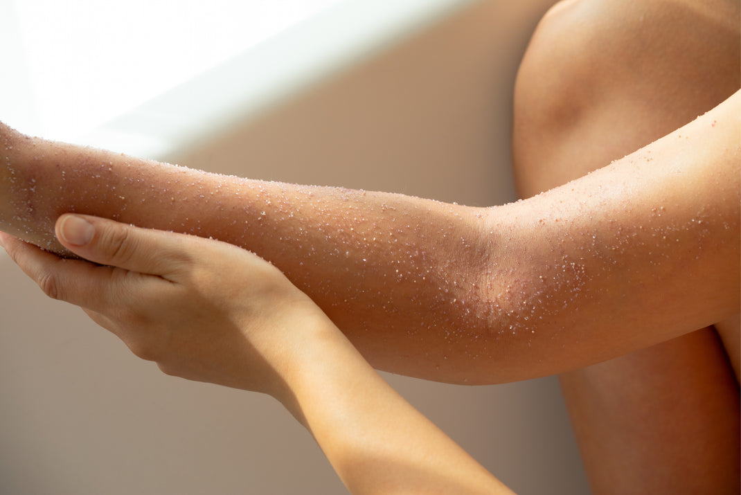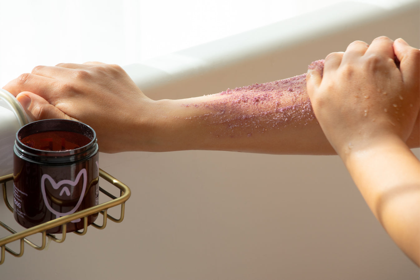 Our sugar scrub, made from rose petals and fine organic sugar crystals, gently removes dead skin cells and cleanses the skin with a gentle, foaming effect.