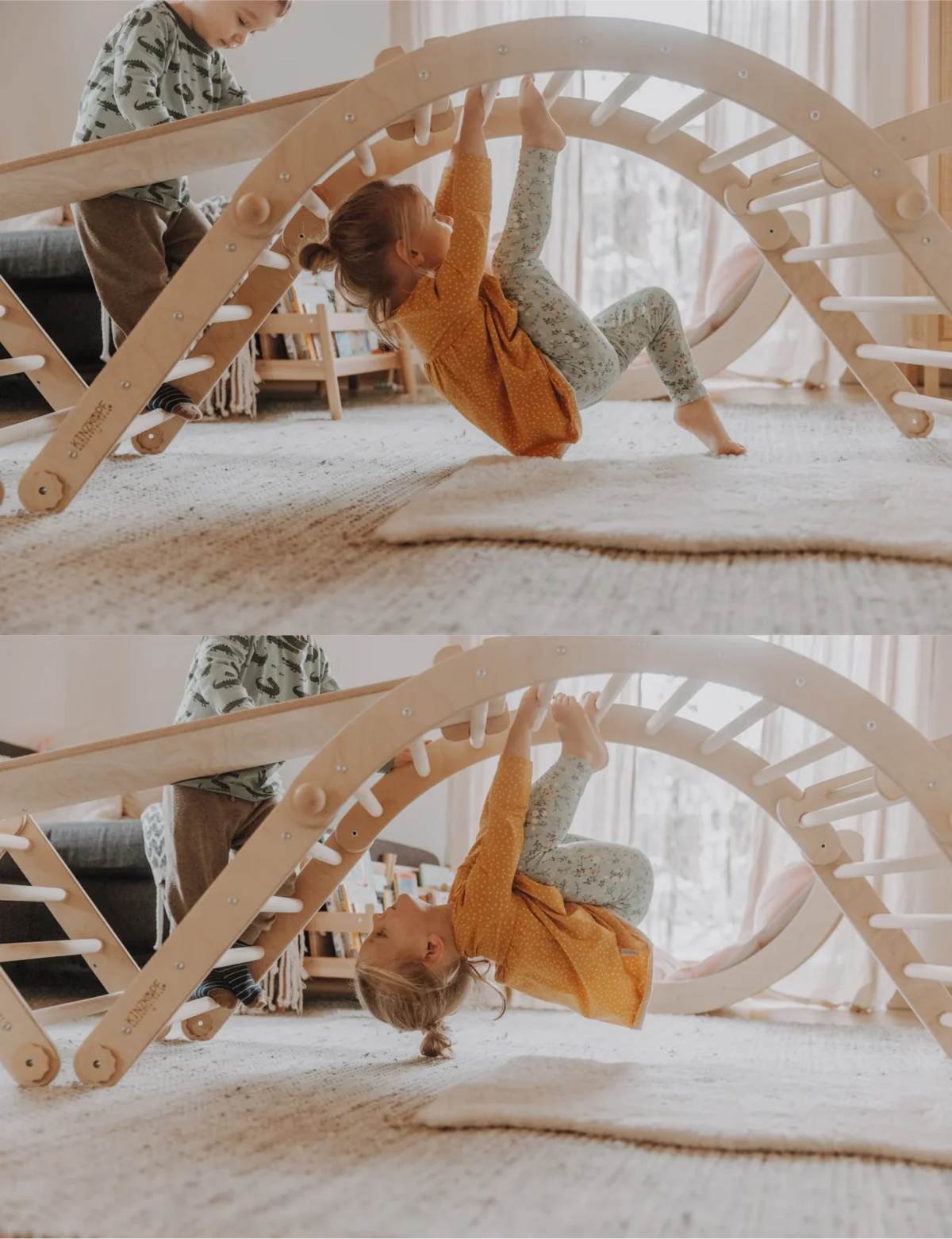 Con ZAUBERBERG le regalas a tu hijo un equipo de juego que crece con él y acompaña cada fase de desarrollo de forma lúdica. Ya sea cumbre para trepar, puente colgante, barco o tienda de campaña – Zauberberg no pone límites a la imaginación. Gracias a su construcción modular, se adapta de forma flexible a las necesidades y habilidades de tu hijo. Perfecto para familias que quieren traer movimiento, juego y desarrollo creativo a su hogar.
