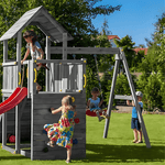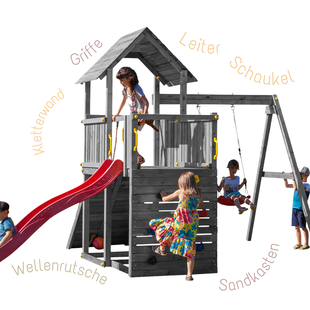 Dit grote klimrek voor in de tuin is een echte alleskunner voor actief spel met veel vrienden of broers en zussen. Of het nu schommelen, glijden, klimmen of fantasierijk spelen is – de speeltoren groeit mee met je kind en biedt jarenlang een veilige, veelzijdige speelervaring. De perfecte keuze voor gezinnen die een duurzaam en stimulerend speelterrein in de tuin zoeken.